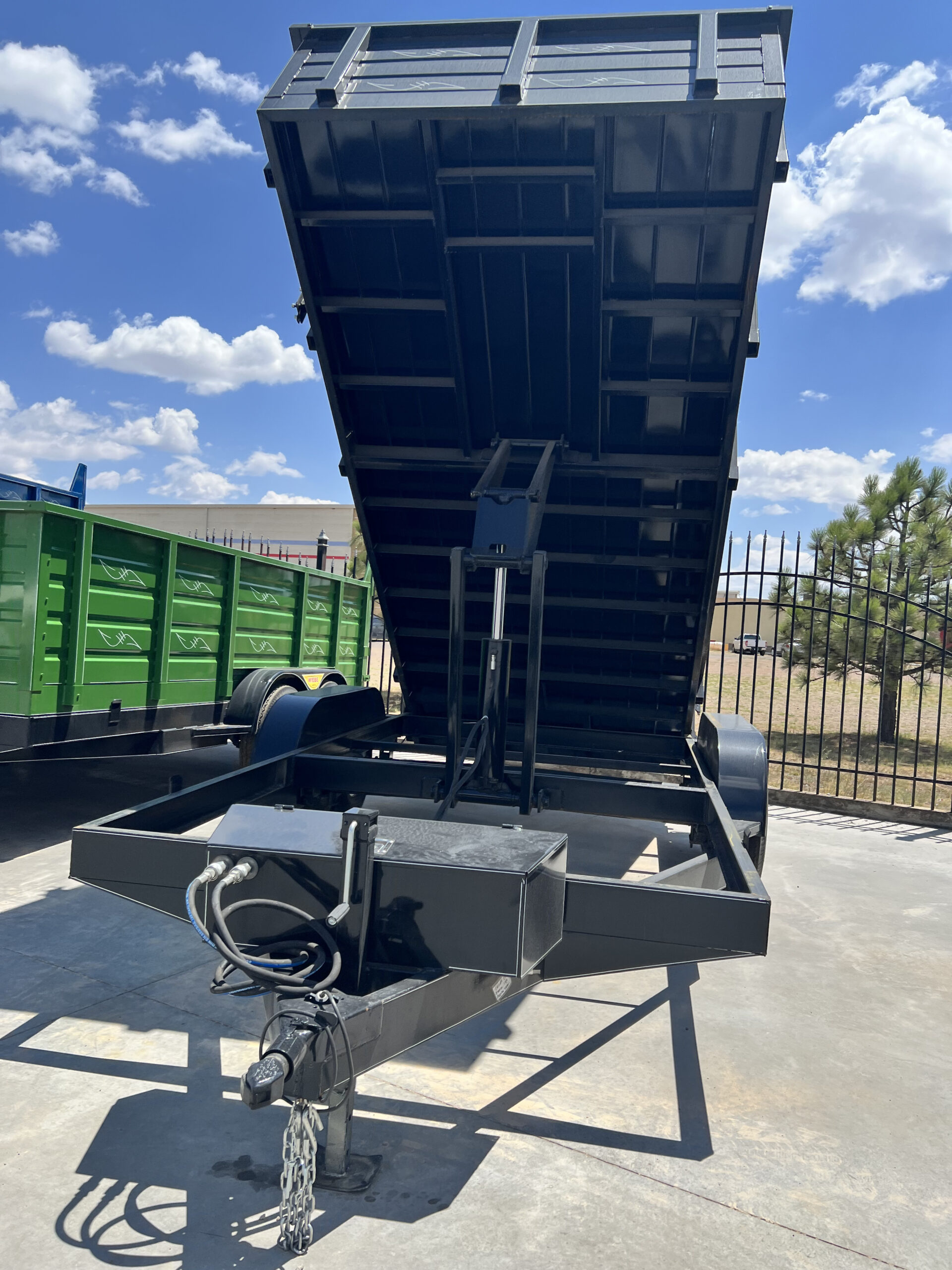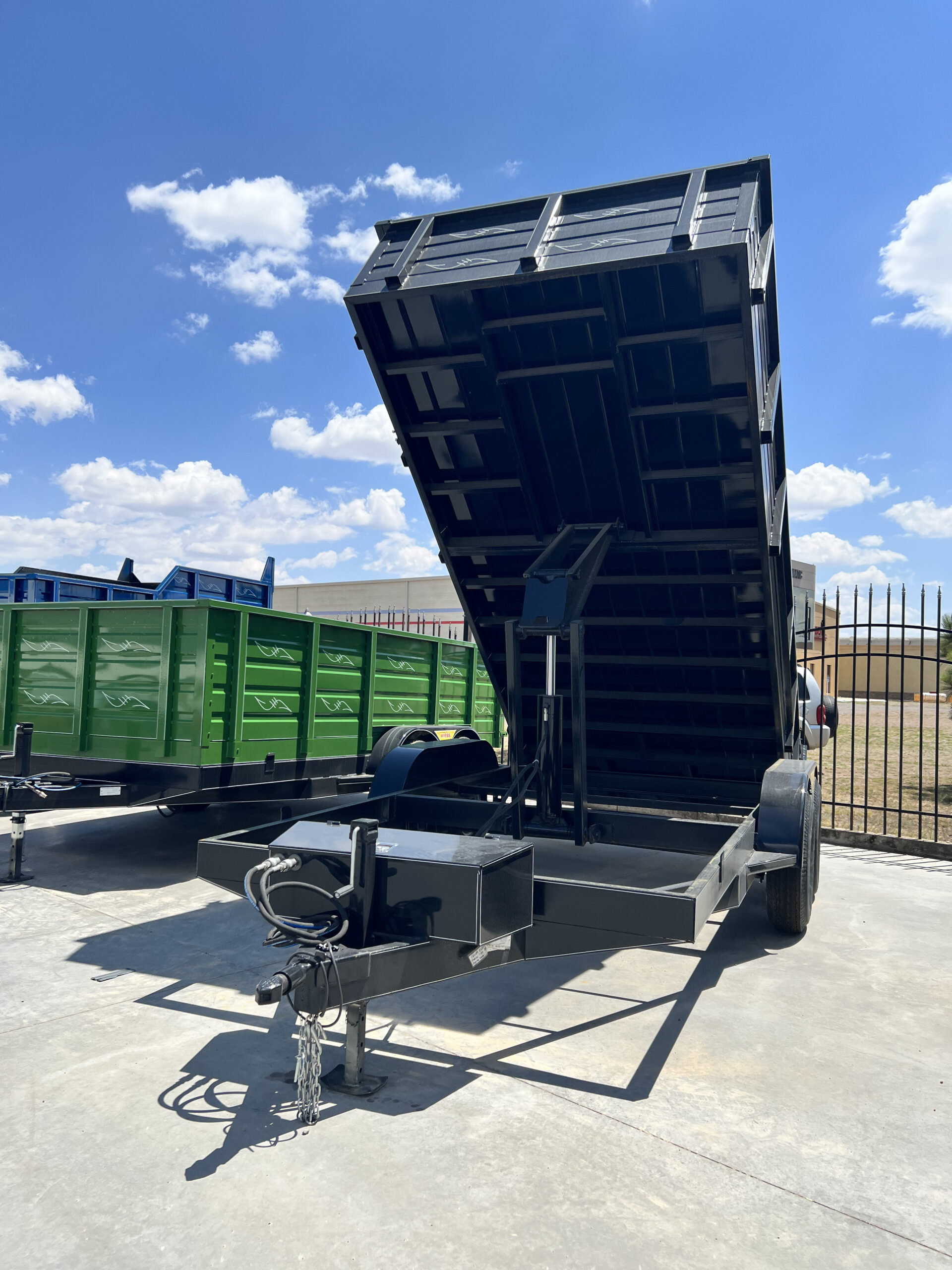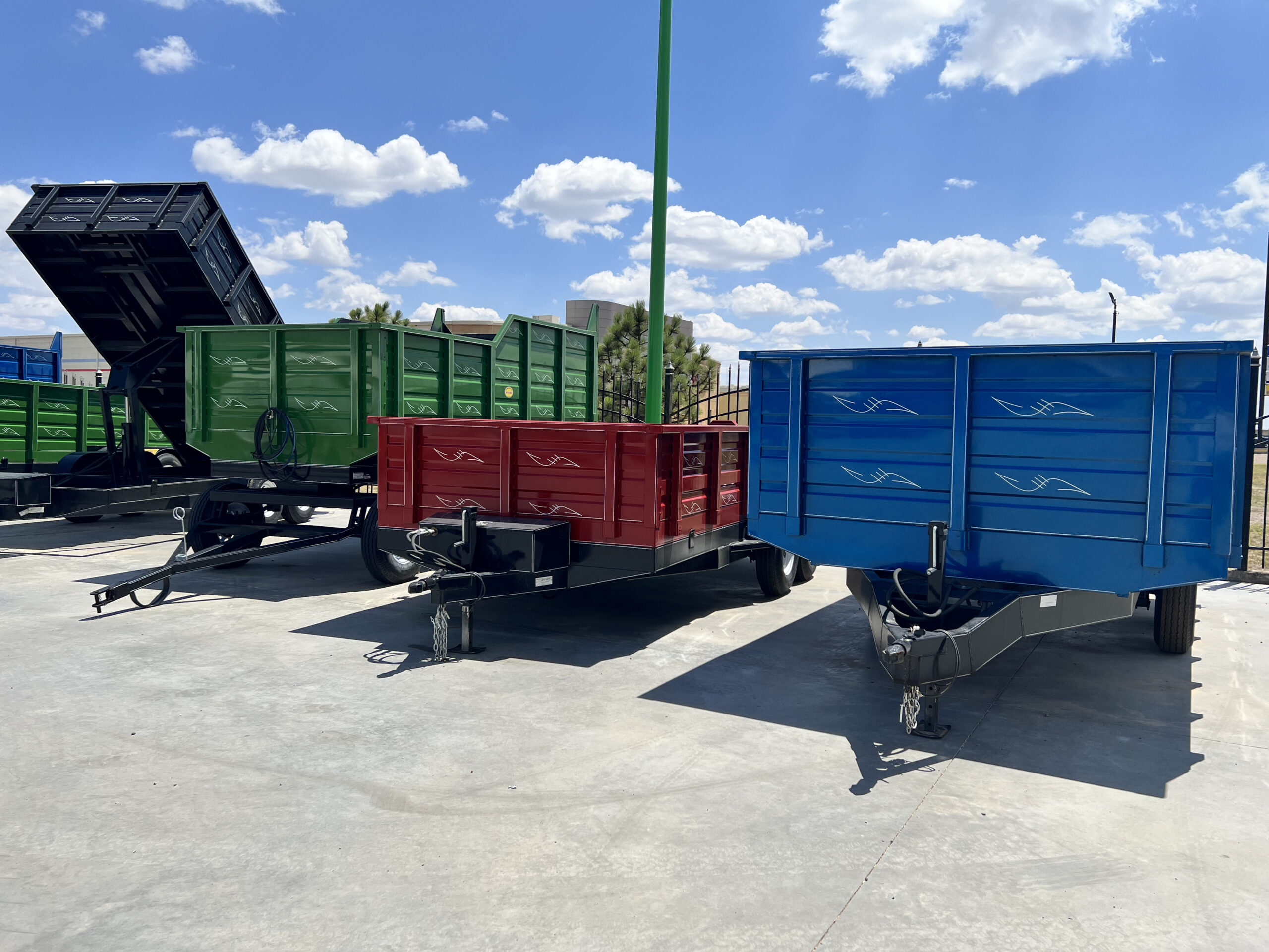 Los remolques tipo Volteo tienen su plataforma a un nivel medio de las llantas por lo que es de facil acceso a la plataforma, tiene plataforma de acero, capacidad de 3,000 Kg hasta 6,000 Kg., estos cuentan con un sistema hidraulico que puede levantar la plataforma para su fácil descarga.